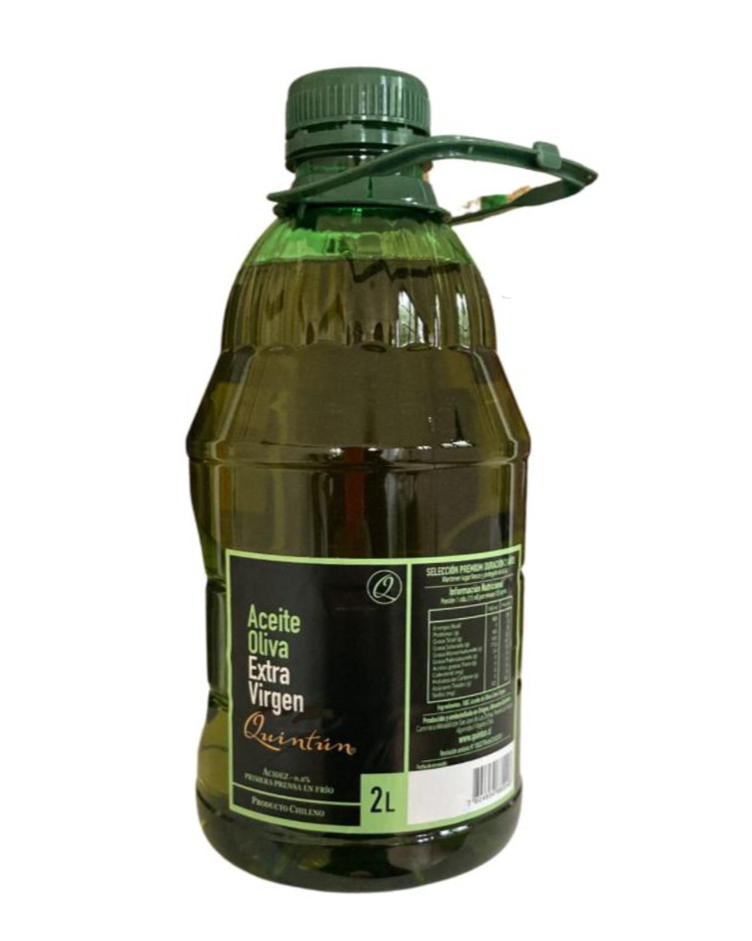 Bidón de 2 litros de aceite de Oliva Extra Virgen Quintún, elaborado y embotellado en origen en su planta de Algarrobo.