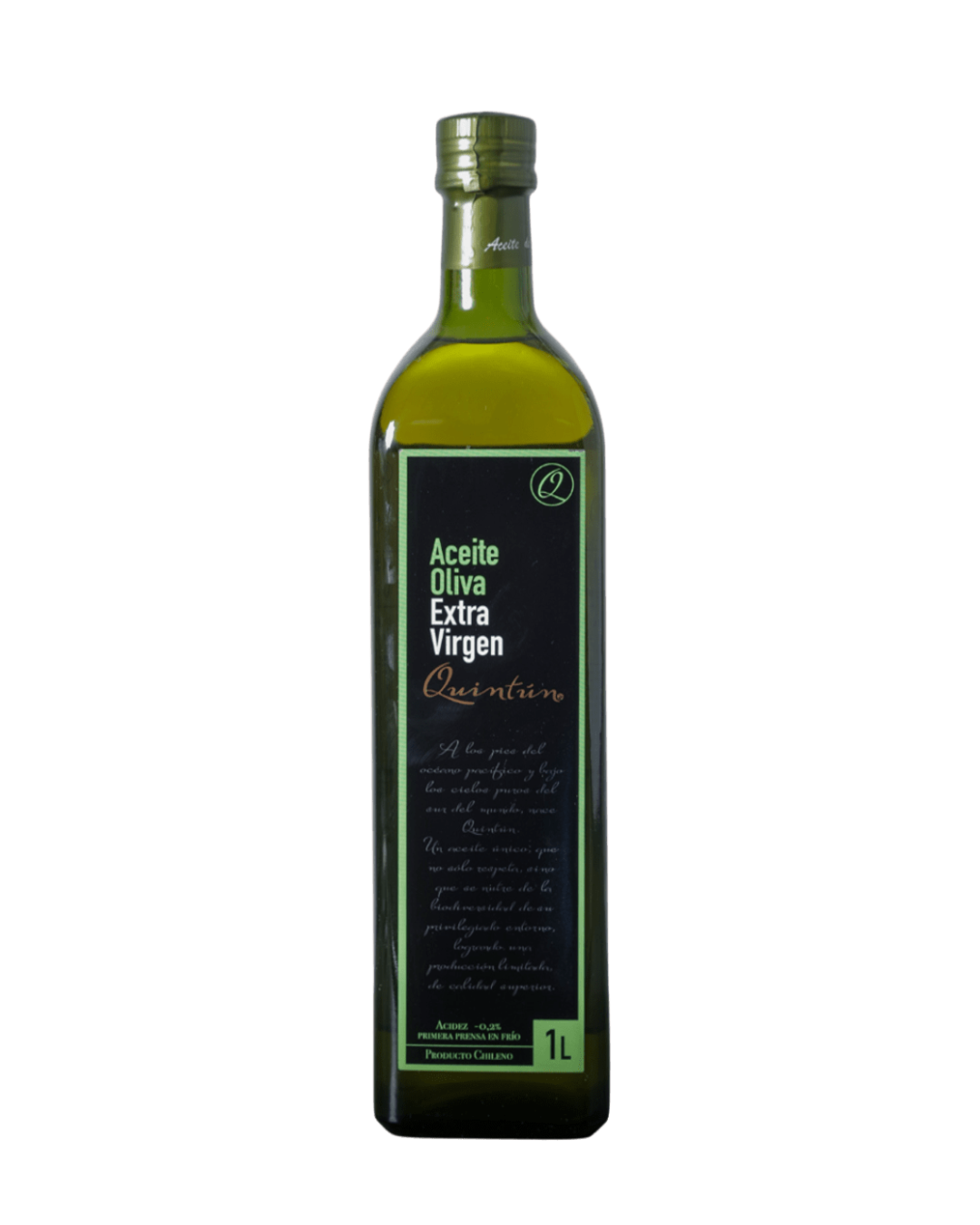 Botella de 1 Litro de aceite de Oliva Extra Virgen Quintún, elaborado y embotellado en origen en su planta de Algarrobo.